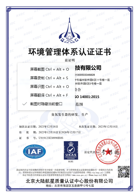 對于來料匯威嚴(yán)把質(zhì)量關(guān),精選每個部件的供貨商,同時,匯威建立了72小時老化體系,每一臺臭氧發(fā)生器的出廠都要經(jīng)過嚴(yán)格的測試,保證品質(zhì)。